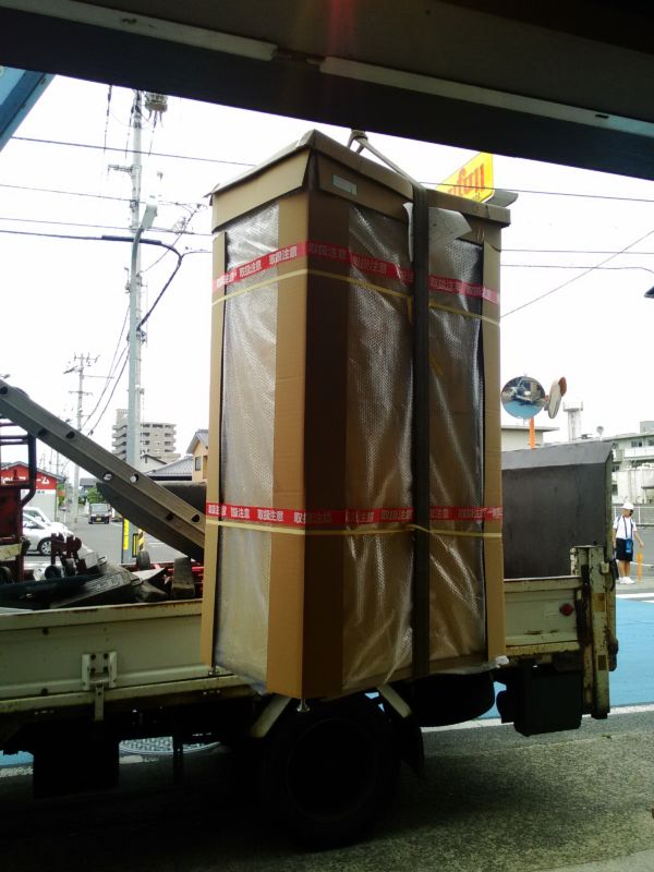 お店の前が暗くなったと思ったら、に大きな物体が運ばれてきました!