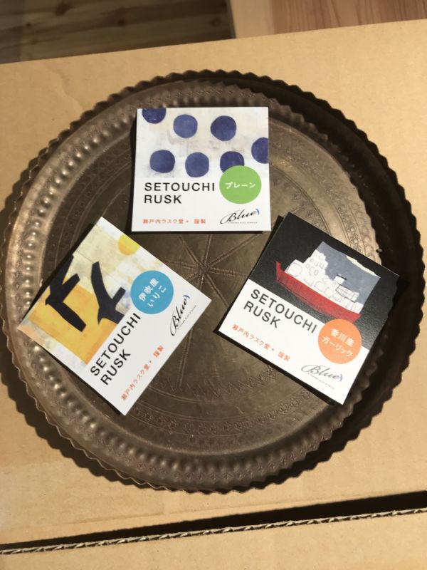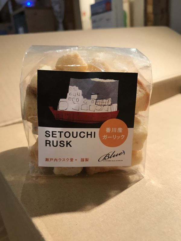 香川県の海の玄関とも言える北浜アリーにある北浜ブルーストーリーズ様で当店のラスクを販売していただいておりますが、表のラベルが専用のものになっています。
