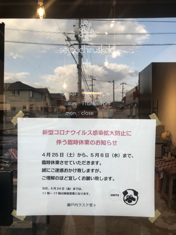 お知らせ新型コロナ感染症拡大防止にともなう臨時休業のお知らせ 23 4月 【重要なお知らせ】新型コロナウイルス感染症の拡大防止に伴う店舗の臨時休業につきまして(2020年4月23日更新) 新型コロナウイルス感染拡大による緊急事態宣言発令を受け、お客様ならびに従業員の安全と感染拡大抑止のため、当店舗を臨時休業とさせていただきます。 【臨時休業期間】4月25日(土)〜5月6日(水・祝)の期間を臨時休業とさせていただきます。 ※今後の状況により休業期間を変更する場合がございます。 ハバネロラスクとチーズ。そして日本酒 パソコン椅子をリメイクしたよ