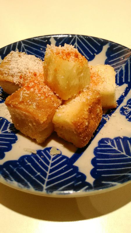 こちらはガーリックラスクに粉チーズ&チリパウダーをかけたもの。