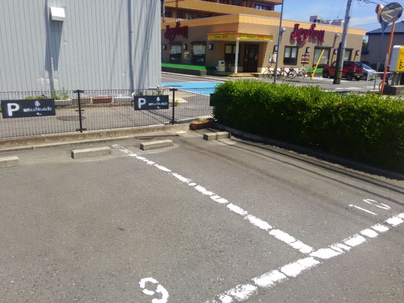 駐車場は9.10番の2台。駐車場からジョイフルさんがこんな感じで見える場所です。